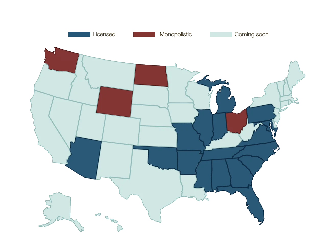 From the Pacific Northwest to the Appalachian Mountains, EverPeak Insurance offers reliable workers' compensation coverage nationwide.